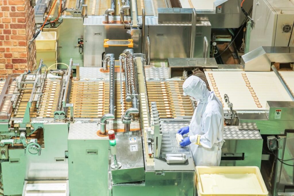 A sanitation area must be set outside the facility so that no outside bacteria enter the premises or the production floor. There must also be handwashing stations and an area where individuals can change into sanitized uniforms. The workers must also be provided with shoe coverings, gloves, hairnets, and masks. Handwashing stations must be present all throughout the plant.